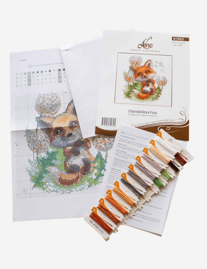 A1022 Dandelion Fox Aine Cross Stitch Kit with Aida fabric